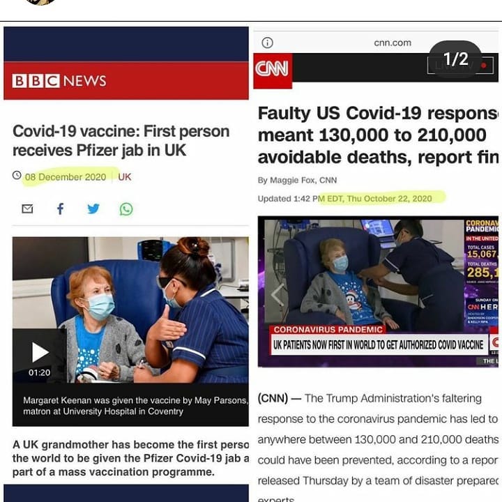 The same photo session in October that was used for CNN was used in December for a different story by the BCC. This lady is a crisis actor who was even seen falling in a Trafalgar Protest. It’s all lies. The death toll, the diagnosis, the severity…If it wasn’t a lie, they wouldn’t need actors.