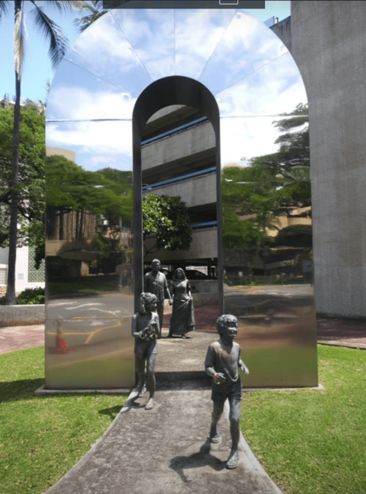For example, there is even a two pillared statue in Honolulu near all the federal and state buildings. This two pillared portal is an archway design and the artist and plaque says it signifies going from the past, walking through the portal doorway or archway, and entering the future. If we pay close attention to the symbolism in plain sight of the statue, the side of the portal that the parents are on are dark and dingy, but the side the children are on is bright and shiny. But the only problem is the children are in the future alone without their parents. I believe that statues like this are two things: it’s a sign to initiates that there’s a time portal somewhere in the area, and it’s also showing that this cult that’s responsible for hiding this technology is telling people that something is going to happen to the adults in the future, and the kids of the future will be parentless. Another thing is it’s rumored that the time travel projects often use children and the reason children are used to go through the time portals more often is because they can cope better than the adults can.